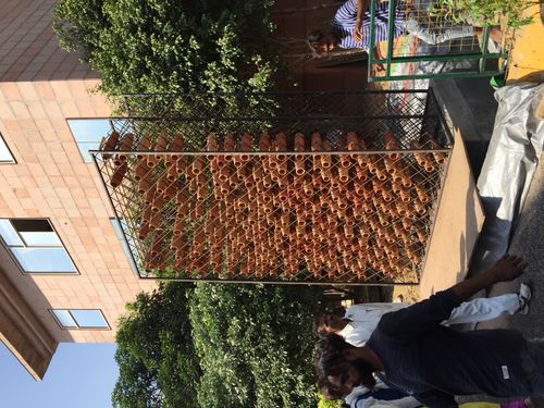 Instead of stacking the pots one on top of the other (like with Beehive Deki) we used a metal frame to reduce the number, enhance visual penetration and for faster assembly of the overall system. This module can be installed as a window unit to cool various spaces in a residence through the process of evaporative cooling and natural ventilation.